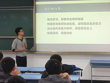 学院团委在各年级团支部中以团日活动的形式对十九大报告精神进行学习。在2017级团支部中举办“聚焦十九大,协力话未来”十九大精神学习暨学涯规划展示会。各团支部以情景展示、知识竞答、观看视频等多种方式学习十九大精神。各班团支书带头领学十九大报告内容,支部全体成员讨论交流,分享学习心得;辅导员老师也带领同学们学习了十九大会议精神,指出坚定理想信念,切实把思想和行动统一到党的十九大精神上来,充分发挥好班级骨干的带头作用,不忘初心,牢记使命,勇做走在时代前列的奋进者、开拓者、奉献者。
