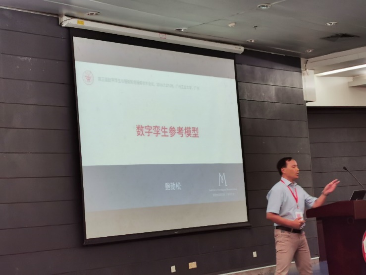 会上广东工业大学刘强教授、北京航空航天大学陶飞教授、香港城市大学李涵雄教授及北京理工大学刘检华教授等多位高校和企业专家介绍了数字孪生与智能制造技术在学术界和工业界的研究与应用的最新进展。本院鲍劲松教授作了题为“数字孪生的参考模型”的报告,介绍了新的数字孪生参考模型,为数字孪生应用指出了新的途径。会议组委会分“数字孪生模型构建,数字孪生应用,智能制造服务“三个主题,安排了分会场报告交流。搜同 郑小虎、汪俊亮、丁思懿、黄德林等四位老师和孙学民、刘世民两位博士研究生也一同参会交流学习。