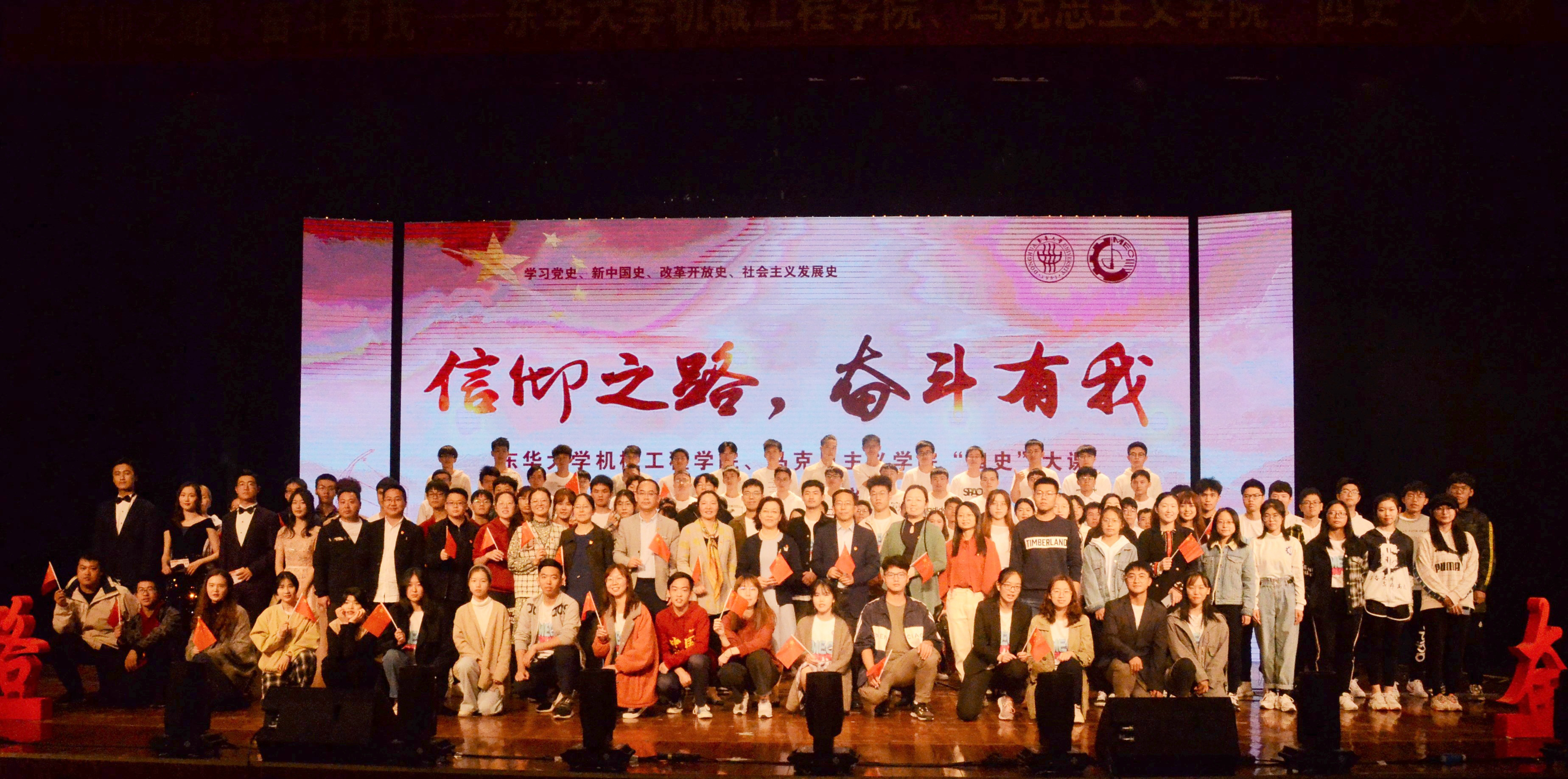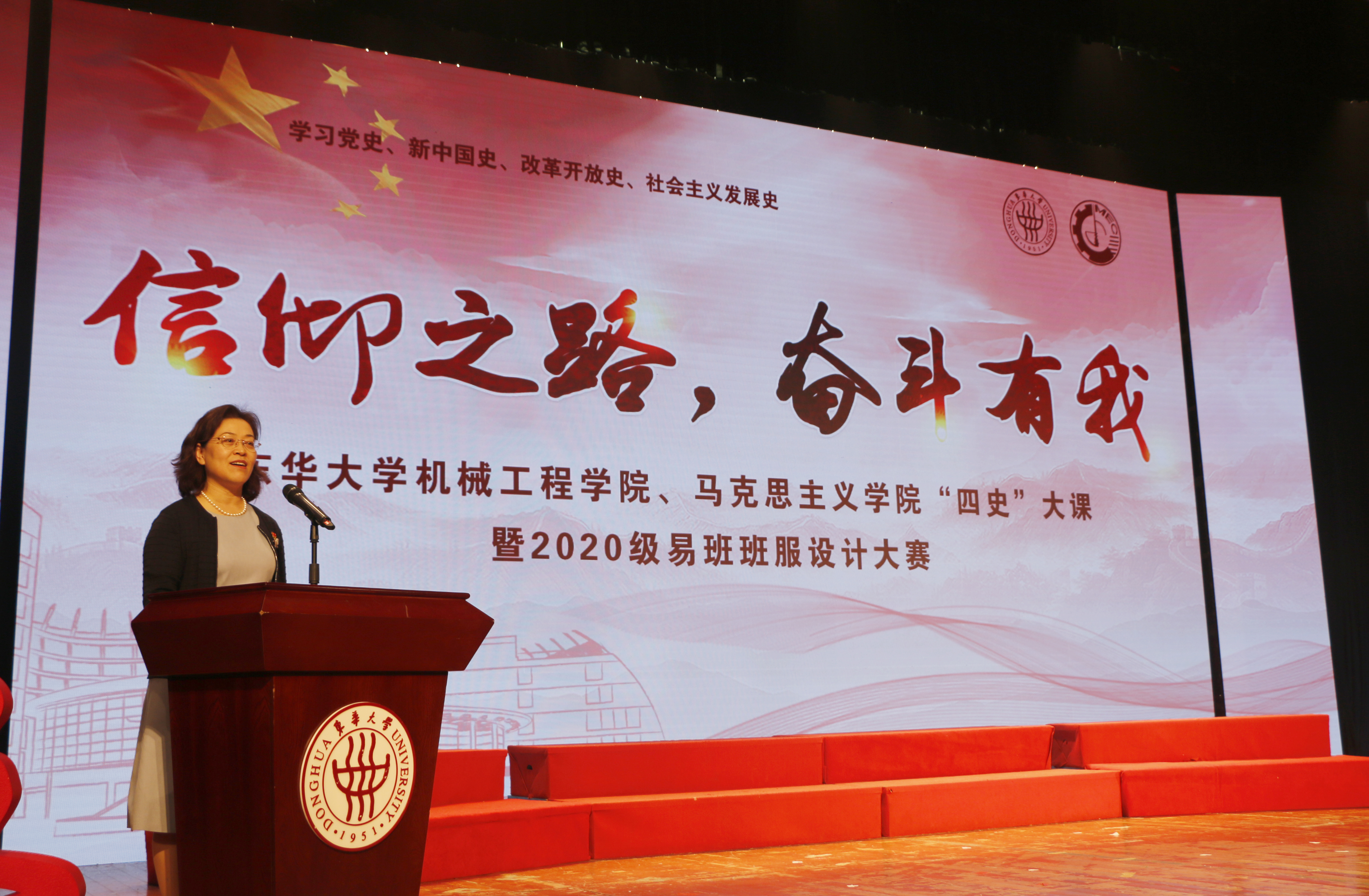 “日月辉映,孕育灿烂人类文明;经天纬地,织就绚丽锦绣中华……”伴随着东华之歌》悠扬旋律,搜同 、马克思主义学院“信仰之路,奋斗有我——‘四史大课”于113日在松江校区锦绣会堂拉开帷幕。从老一辈华纺人到新一代东华人,穿越时空的记忆,以共同的“东华人”身份,演绎党的辉煌历史在砥砺奋进中续写新的时代华章。校党委副书记崔运花出席大课并致辞,搜同 党委书记王新厚、马克思主义学院党总支书记戴叶萍、党委组织部副部长、党校副校长徐玥、学生处副处长赵彦明及两学院党员师生、全体20级新生参加大课。