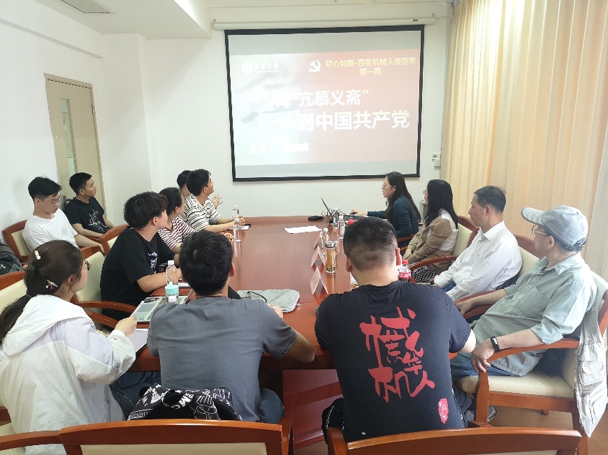 支部教师党员王晓晖讲述从北京大学马克思学说研究会——“亢慕义斋”到中国共产党早期组织的发展历程,在中华民族内忧外患,社会危机空前深重的时代背景下,正是一批批觉醒者,指引中国走上马克思主义道路,开始了实现民族独立、人民解放、国家富强和人民幸福的伟大征程。并鼓励支部青年不驰于空想,不鹜于虚声,立足于百年大党新起点,在中国共产党红色基因的强大精神感召下坚守初心,砥砺奋斗,争做堪当大任的时代新人。