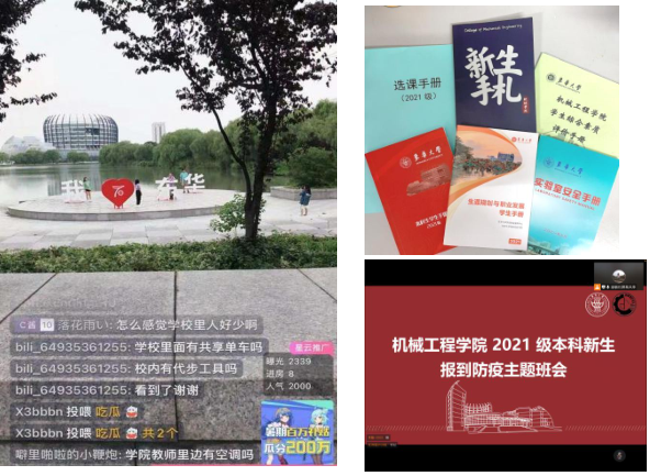 机械学院易班在bilibili视频平台开展“校园直播巡游”活动,帮助新生提前熟悉校园环境、了解报到直通路线,直播间同时在线人数超2000余人,受到广泛好评;同时,立足抖音短视频平台,“机械创E+”账号持续发布“史上最全东华攻略”“揭秘网红月饼背后的学生设计团队”等创新短视频,累计阅读量8000余次,赋能迎新育人新活力。学院精心设计了《新生手札》,带领新生深入了解机械学院发展历史,进行专业启蒙教育,强化新生专业自信。制作《机械学院2021级学生综合素质评价记录手册》,探索推动学生全面成长成才的有效途径。在新生入校前线上开展“搜同 2021级本科新生报到防疫主题班会”,详细讲解疫情防控相关规定,助力新生安全顺利报到。