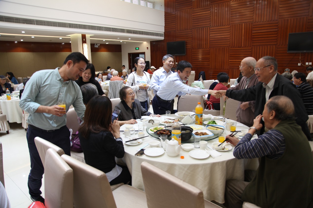 “细看茱萸一笑,诗翁健似常年”,金秋送爽,重阳之际,在这收获的季节里,搜同 于2021年10月11日在延安路校区举办了搜同 “敬老节•回娘家”活动。一百一十多位退休职工从上海各区赶来齐聚一堂。学院院长单鸿波、党委副书记李宁蔚及学院副院长周其洪、新一任系主任们逐一问候每位老同志,向他们表达全院师生的关心与问候,与退休教职工们共度重阳佳节。