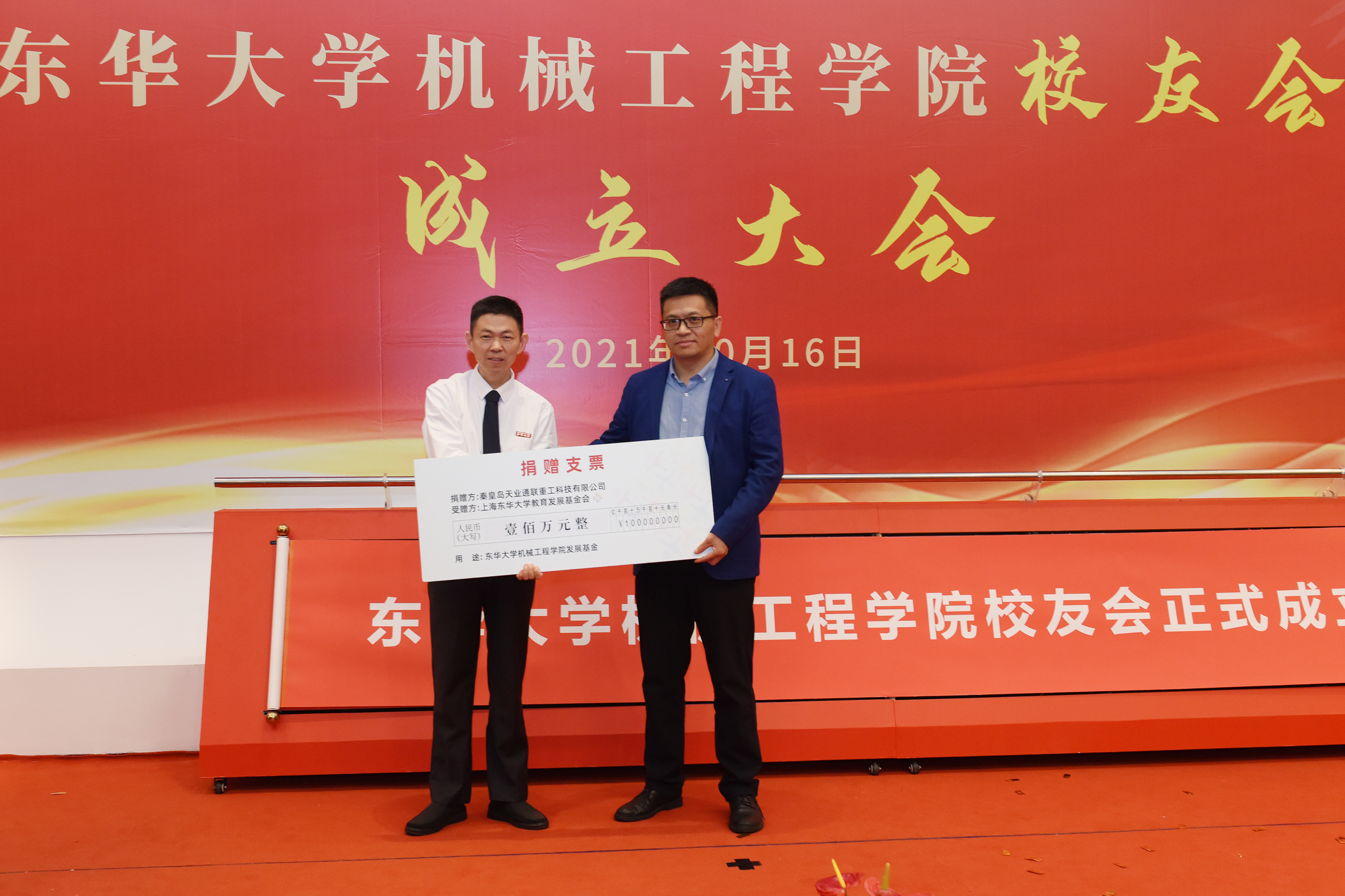 秦皇岛天业通联重工科技有限公司总经理杨超代表公司向学院捐赠100万用于学院发展专项基金;深圳市驰通达集团董事长万腾驰、钦乔夫妇捐款30万,设定“顾兰芳奖教金”用于学院师资队伍建设;南通全技纺织涂层有限公司董事长吴强捐赠30万,支持学院发展和青年教师队伍建设。