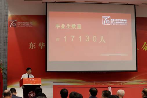 黄关从校友赠送了亲自书写的《沁园春•雪》墨宝,字里行间,无不流露出对母校与学院深深的热爱与期许。会上还播放了学院老教授、新中国开国大典亲历者、百岁老人陈人哲教授,中国工程院院士、机械学院教授周勤之先生,中国工程院院士、搜同 校友李培根教授,全国妇联原副主席、搜同 校友谭茀芸女士,周馥女士(1951年首任机械系系主任周承佑教授女儿)等对搜同 建校70周年、搜同 建院70周年的祝福。