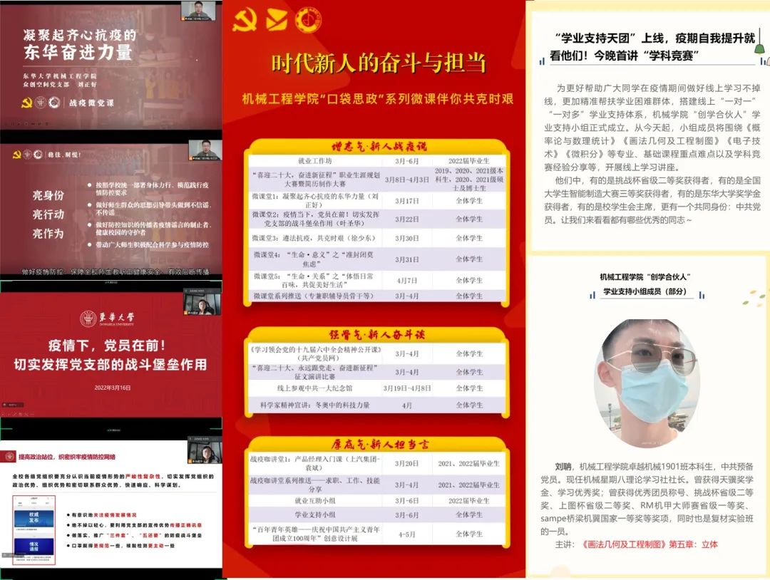 学院专兼职辅导员团队做好疫情防控期间学生思想教育工作,奋战驻楼一线,组织师生党员带头打造“口袋思政”系列微课,开好“先引式”主题班会、讲好“贯通式”战疫党课、做好“陪伴式”心理疏导、办好“云聚式”毕业典礼,共促学风的良好氛围,引导学生做到疫情期间思想进步“不掉线”。