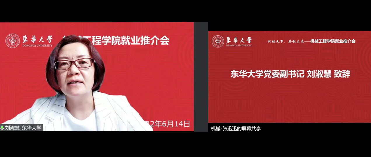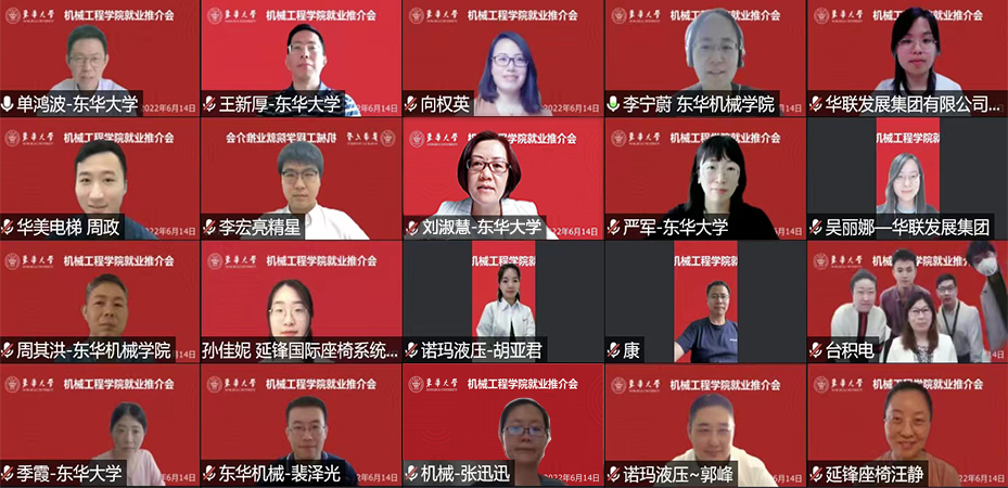 为贯彻落实党中央、国务院、教育部、上海市关于高校毕业生就业工作的决策部署,拓岗位、促就业,精准对接2022届、2023届毕业生就业工作,6月14日,“‘机’动天下,共创未来”搜同 就业推介会在云端顺利举行,校党委副书记刘淑慧出席并致辞。学生就业服务中心主任严军、副主任秦泽峰,搜同 党委书记王新厚、院长单鸿波、副院长周其洪、副院长裴泽光,8家参会企业负责人,以及学院2022届、2023届毕业班专兼职辅导员、毕业生代表共同参会。会议由搜同 党委副书记李宁蔚主持。